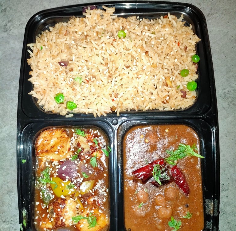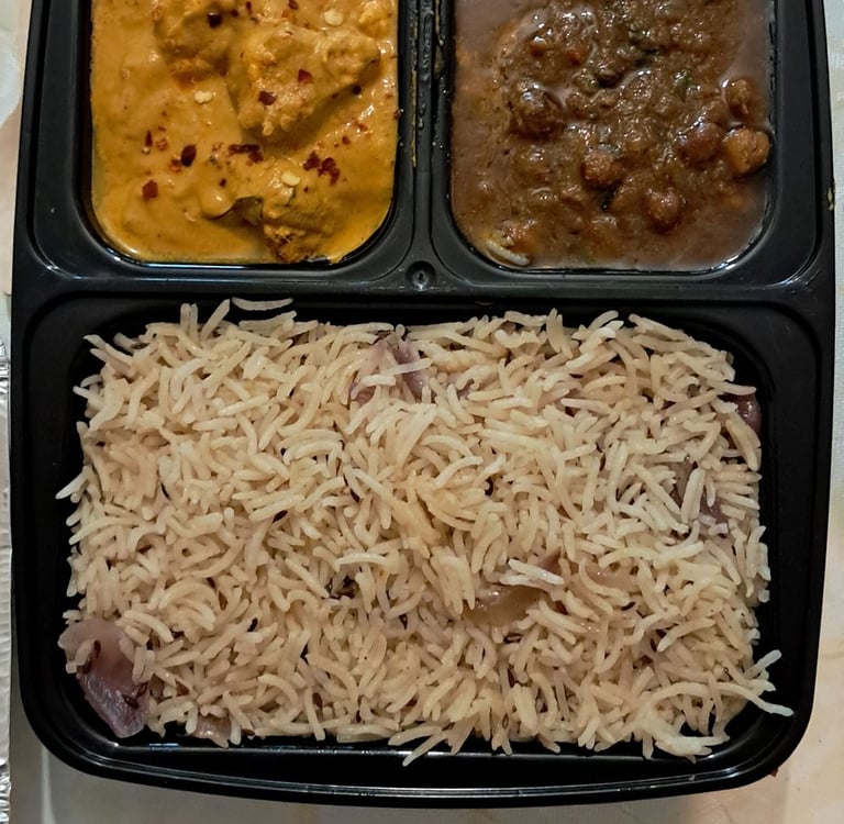 4 Roti, Jeera Rice, Chhole, Aaloo Fry/Aaloo gobi fry (alternate week)